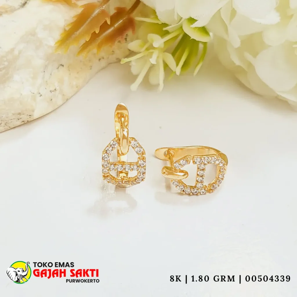 Perhiasan Anting emas asli dengan desain mewah dan elegan hanya di Toko Gajah Sakti purwokerto, pusat perhiasan terpercaya yang menghadirkan koleksi emas 6 karat sampai dengan 17 karat berkualitas tinggi. Setiap produk dibuat oleh pengrajin profesional, menghasilkan perhiasan dengan detail halus, tampilan berkelas, dan nilai investasi jangka panjang.