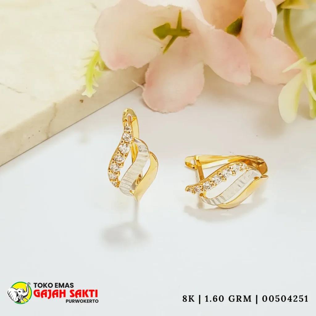 Perhiasan Anting emas asli dengan desain mewah dan elegan hanya di Toko Gajah Sakti purwokerto, pusat perhiasan terpercaya yang menghadirkan koleksi emas 6 karat sampai dengan 17 karat berkualitas tinggi. Setiap produk dibuat oleh pengrajin profesional, menghasilkan perhiasan dengan detail halus, tampilan berkelas, dan nilai investasi jangka panjang.
