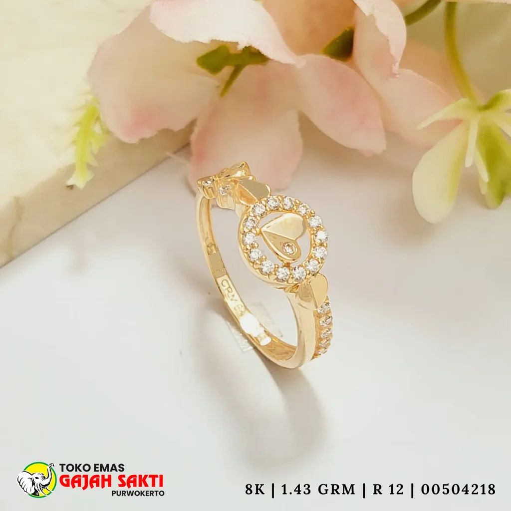 Perhiasan Cincin emas asli dengan desain mewah dan elegan hanya di Toko Gajah Sakti purwokerto, pusat perhiasan terpercaya yang menghadirkan koleksi emas 6 karat sampai dengan 17 karat berkualitas tinggi. Setiap produk dibuat oleh pengrajin profesional, menghasilkan perhiasan dengan detail halus, tampilan berkelas, dan nilai investasi jangka panjang.